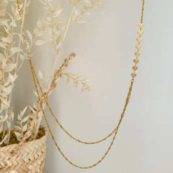 NINON | Sautoir perles bois & chaîne acier inoxydable doré